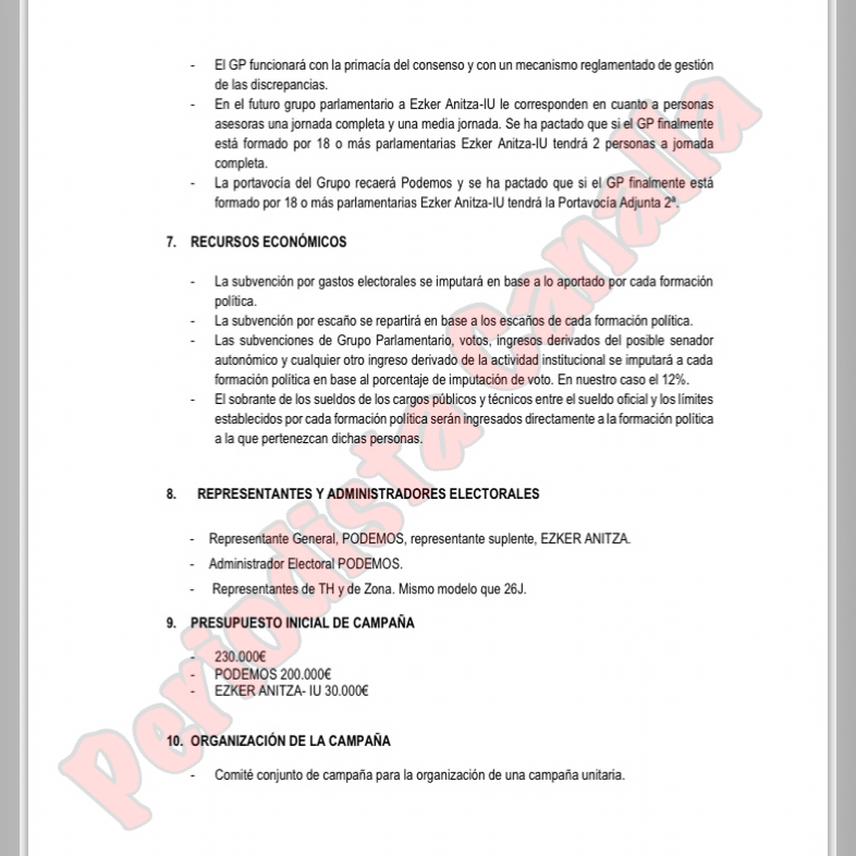 Preacuerdo electoral: 83% de cuota para Podemos y 2 escaños de salida para IU-Ezker Anitza